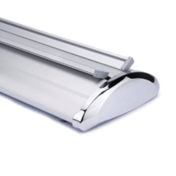 Onze dubbelzijdige roll-ups onderscheiden zich in het feit dat ze langs beide kanten leesbaar zijn. Ideaal om op te stellen als vrijstaande reclamedisplay op uw beursstand of in uw winkelruimte. Opstellen duurt letterlijk 5 seconden. Bestel vandaag nog online uw roll-up met dubbelzijdige print en ontvang hem binnen de 5 werkdagen.