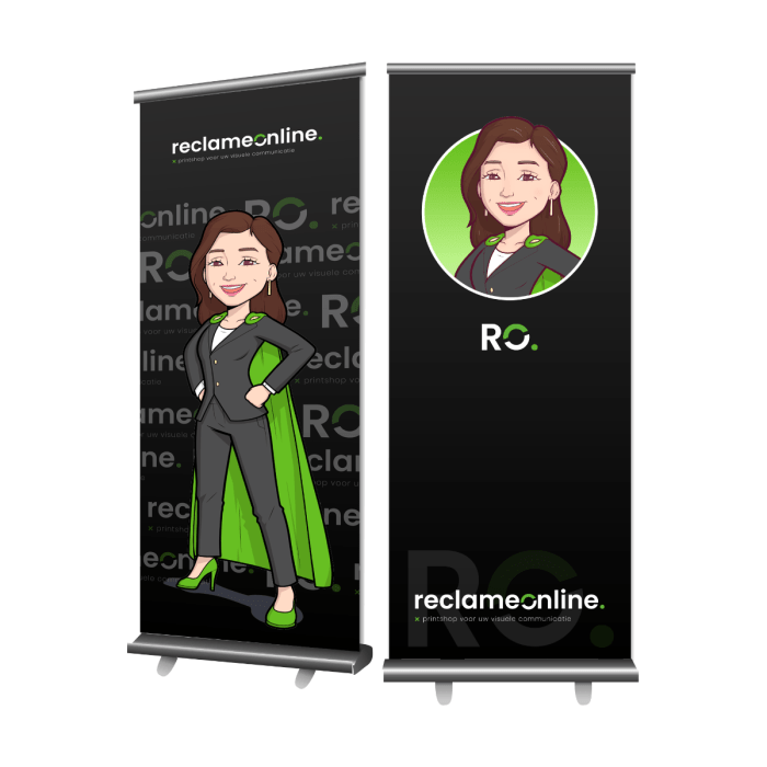 Onze roll-up banners kan u snel en gemakkelijk inzetten op beurzen en presentaties. De roll-up budget is verkrijgbaar in verschillende formaten en sommige cassettes zelfs in verschillende kleuren. Het standaard design van deze roll-up is tijdloos en past bij elke print. Met de bijgeleverde tas neemt u hem zo mee naar uw volgende evenement. Upload uw persoonlijke print en bestel vandaag nog!